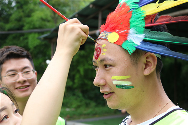 团队被分为三部落,日部落,太阳部落。。。,大家还要学会用部落独特的语言来交流,这个环节创新又搞笑,小伙伴们笑得合不了嘴,接下来挑战是夺宝奇兵、野外寻宝记,超级碰碰球,晚上是激情篝火晚会,全天的活动充实而快乐。